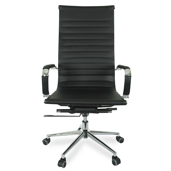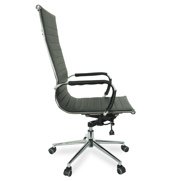Механизм качания повышенной комфортности и фиксацией в вертикальном положении Регулировка высоты (газлифт) Каркас металлический хромированный Подлокотники хромированные с накладками Материал обивки: кожа PU