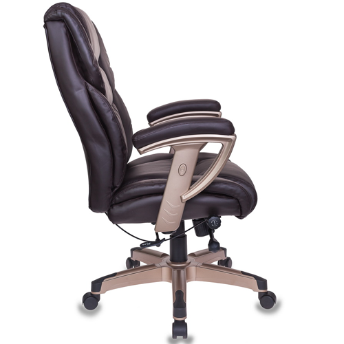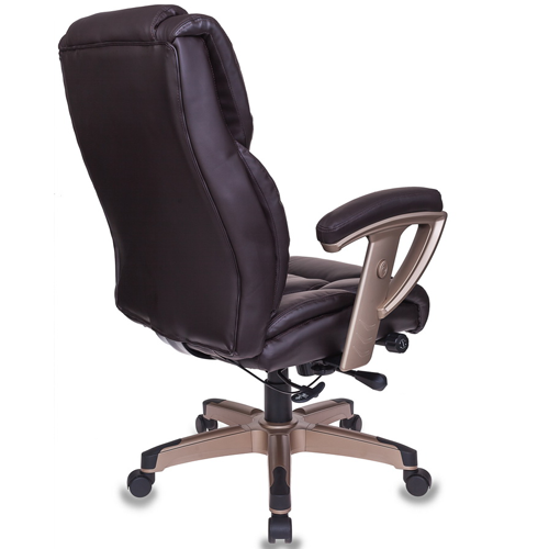 Регулировка высоты газлифт Усиленный механизм качания Усиленная платформа Регулируемая поддержка поясничной области Регулируемые по высоте подлокотники, крашеный пластик с накладками Крестовина пластиковая, крашеная, с накладками Ограничение по весу: 181 кг Материал обивки: рециклированная кожа, искусственная кожа задняя часть спинки ХАРАКТЕРИСТИКИ Тип механизма качания: с фиксацией в вертикальном положении Механизм качания: ДА Регулировка высоты газлифт: ДА Регулировка высоты подлокотников: ДА Регулировка поясничной области: ДА Цвет спинка: коричневый Цвет колеса: черный Цвет пластик: золото Ограничение по весу: 181 кг Особенности/доп.информация: для больших людей