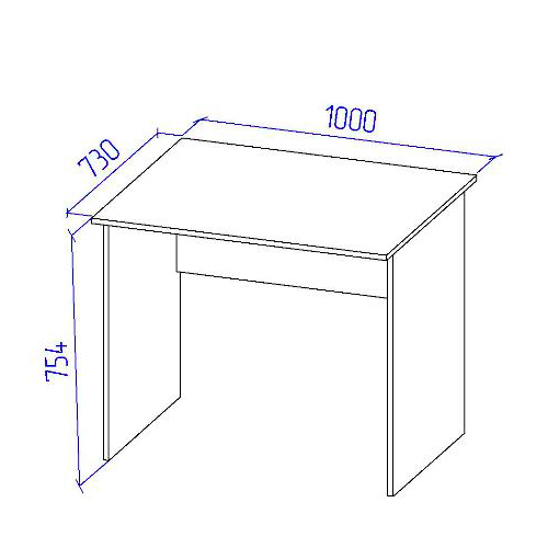 Стол офисный прямоугольный Материал - Ламинированное ДСП, Толщина Столешницы 16 мм., кромка облицовка ПВХ противоударная 2 мм. Толщина деталей каркаса 16-18 мм., кромка облицовка ПВХ противоударная 0,45 мм. Высота: 75,4 см Ширина: 73 см Длина: 100 см