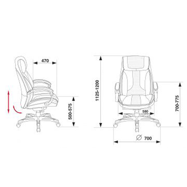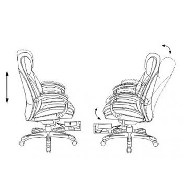 Саморегулирующийся механизм качания с регулировкой под вес Регулировка высоты газлифт Подвижные пластиковые подлокотники с мягкими кожаными накладками Ограничение по весу: 120 кг Материал обивки: рециклированная кожа, искусственная кожа задняя часть спинки
